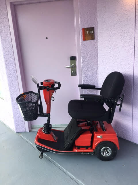Once again, Walker Mobility provided great service. This trip we rented a house instead of staying at a hotel, so I was a little concerned about the delivery and pick up, but when we arrived at our rented house (in a gated community) the scooter was waiting for us. I got the extended range scooter, and really put it to the test. We went to three parks in one day, in the pouring rain, and the scooter didn't let us down. Walker Mobility is simply the best.